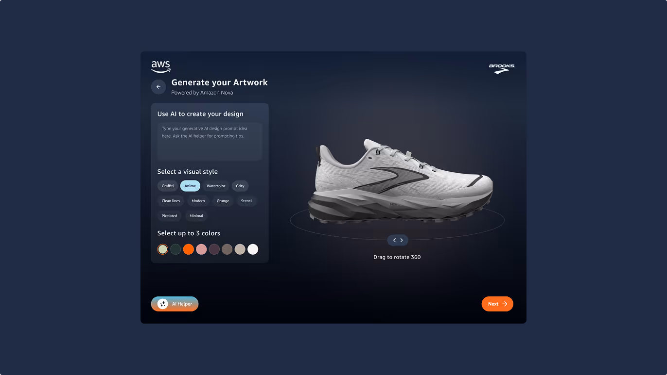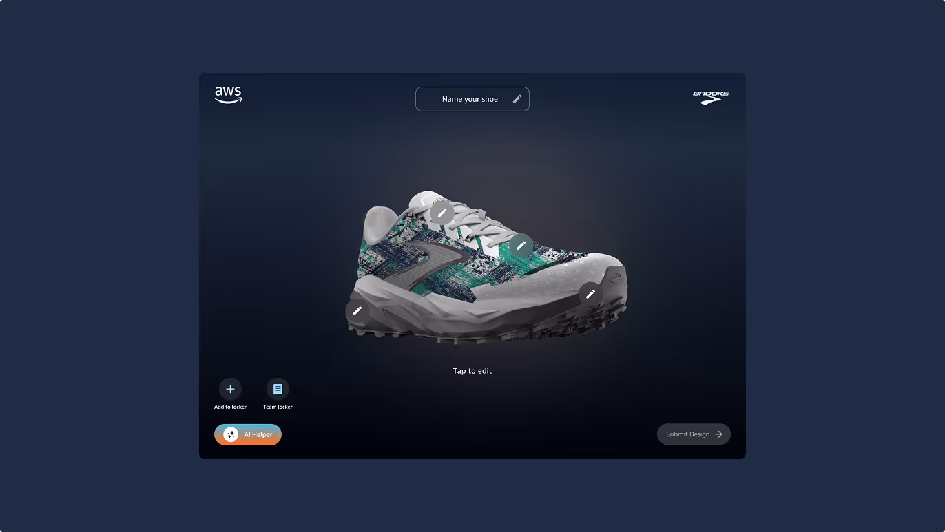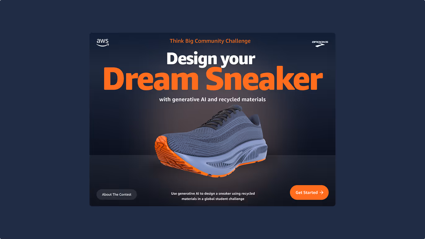 I designed a digital experience for Amazon AWS where the challenge was to invite students worldwide to use generative AI to design sneakers made from recycled materials.